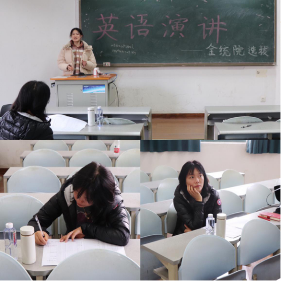 公司一直注重培养员工全面发展,对于此次比赛也是认真准备,鼓励同学们踊跃参与。3月4日中午,公司在财院校区水教304进行演讲比赛选手初选,由陈珂老师担任评委。初选要求每位参赛选手准备不超过2分钟的英语演讲,内容自选,以现场抽签方式决定演讲顺序。面试期间,刘奕伶、肖晗等这六位同学表现优异,从30位选手中脱颖而出,被选为公司代表。经过陈珂老师的悉心指导和赛前的精心准备,他们站上了公司的舞台,大显金统学子风采,并为金统院争得了宝贵的荣誉。
