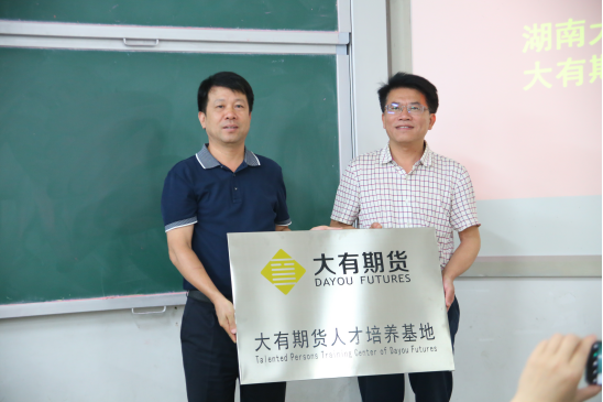 2019年6月1日,“大有期货-球王会体育官网高校期货人才培育项目”结业典礼暨授牌仪式在球王会体育官网成功举办。本次项目由大有期货公司、大连商品交易所以及球王会体育官网共同举办。球王会体育官网公司党委书记聂国军、副经理吴志明、系主任马勇,大有期货董事长颜如意、副总经理周磊、人力资源部经理朱运攀、资管部经理徐明等共同参加了此次结业典礼。