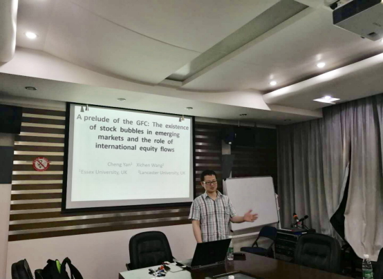 2019年6月14日下午,英国埃塞克斯大学(University of Essex)颜诚副教授应邀来访球王会,于球王会体育官网财院校区行政楼409展开了题为《A prelude of the GFC: The existence of stock bubbles in the emerging markets and the role of international equity flows》的学术讲座。讲座由应用金融系主任刘轶副教授主持,球王会师生参加了本次讲座。