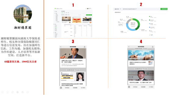 深入实施立德树人系统工程,强化“四个融入”,即融入课堂教学、融入社会实践、融入校园文化、融入制度建设,推进社会主义核心价值观建设工作。实施具体的举措有:举办课程思政教案集体备课,挖掘课程思政元素,针对社会保障、养老、医疗、不可抗辩、保险法等体现平等、公正、法制的元素;针对保险最大诚信原则的诚信教育元素;针对保险科技大讲堂、人工智能、大数据、5G、相互保险等科技及产品世界领先体现的民族自豪感和爱国主义情怀元素;针对保险扶贫、养老社区的友善元素,推进核心价值观入脑、入心,充分落实课程育人;建立微信公众号,以“湘财精算圈”为阵地,定期精选杰出员工重点宣传,广推正能量,加强网络育人;开展特色主题党日、团日活动,强化组织育人;坚持帮“困”与扶“智”相结合,实现资助育人;举办“保险辩论赛”、协办“慕尼黑再保险精算比赛”、“平安保险产品创意大赛”等系列文化活动,深入开展文化育人;鼓励员工申报科研项目,形成科研氛围,提升科研育人;依托心理咨询室,开展心理素质拓展活动,推进心理育人;加强与中国人寿、太保、平安、中华联合等保险公司的结对共建,开展校内校外“双导师”制、业内精英进校园等形式多样的社会实践活动,强化实践育人。