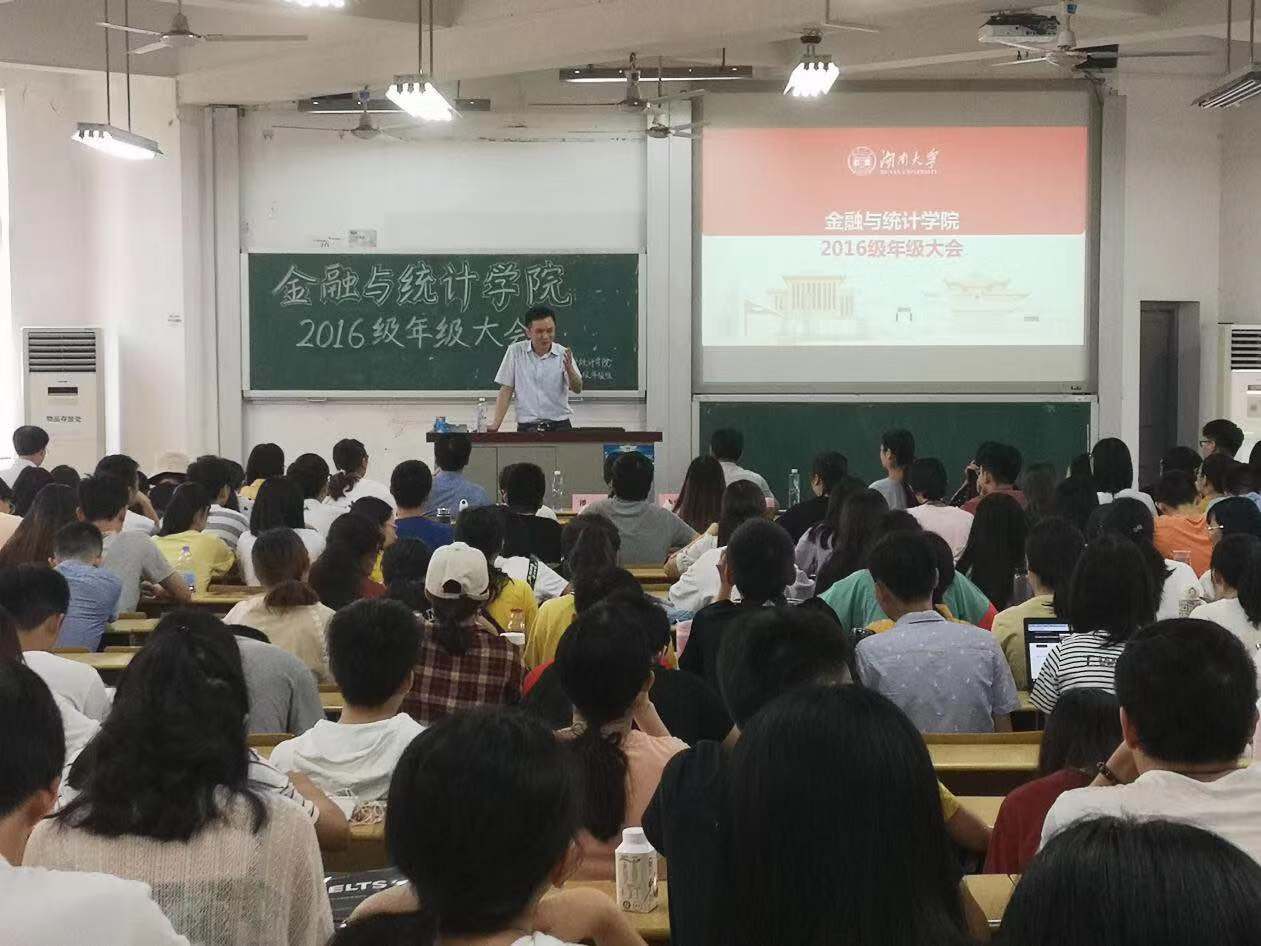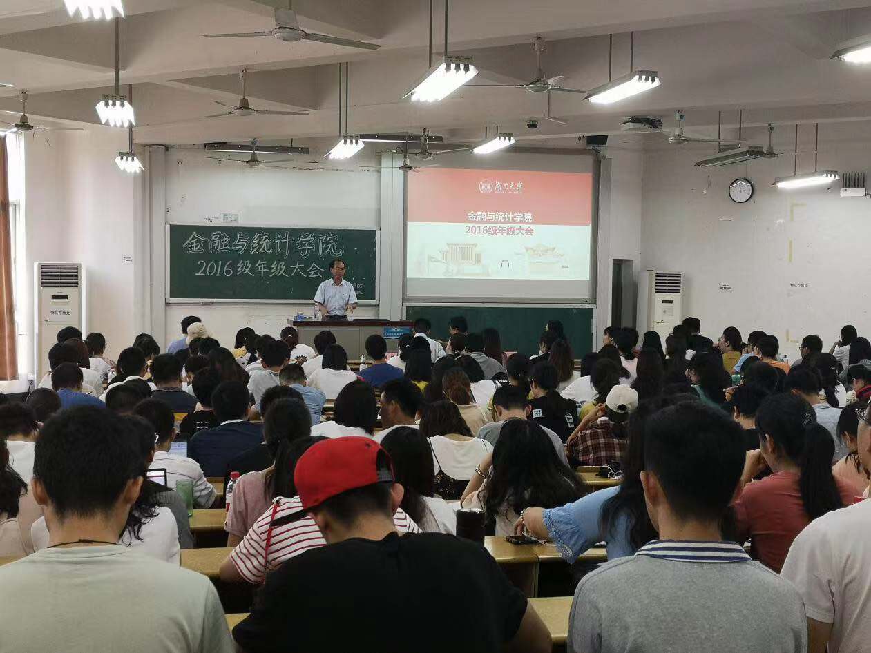 9月17日下午,球王会2016级年级大会在球王会体育官网财院校区二教501隆重举行。公司党委书记聂国军、经理潘敏、党委副书记刘周平、副经理李海奇、16级辅导员谢君以及球王会的全体16级同学出席此次会议。本次会议,旨在帮助同学们分析形势、提出建议和做出规划,鼓励同学们积极面对和安排好最后一年的老员工活。