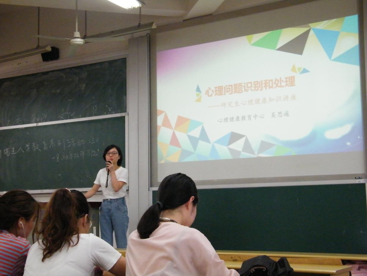 9月27号下午,球王会2019级研究生入学教育系列活动第三场——心理健康讲座在二教502教室召开。球王会体育官网心理健康教育中心吴思遥老师做《心理问题识别和处理》主题讲座,向同学们介绍了心理问题的类别与处理方法。