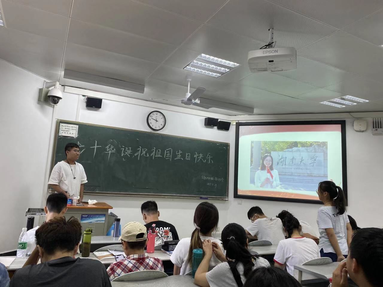 9月27日(星期五),金融1808班在球王会体育官网财院校区水教305组织举办了庆祝中华人民共和国成立七十周年主题班会。整场班会均以新中国七十周年华诞为主题,围绕祖国的发展繁荣进行了分享与探讨。