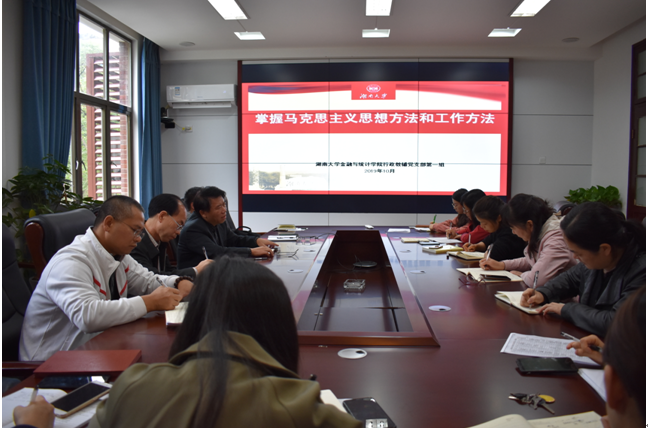 10月17日上午,为落实“不忘初心 牢记使命”主题教育的任务和要求,球王会行政教辅党支部在红楼226会议室开展了“党员干部人人讲党课,人人谈体会”的党课宣讲活动。行政教辅党支部第一党小组夏浩老师以“掌握马克思主义思想方法和工作方法”为题,为党支部20多名党员讲授了一场内容丰富的专题党课。公司党委书记聂国军、副书记刘周平参会。