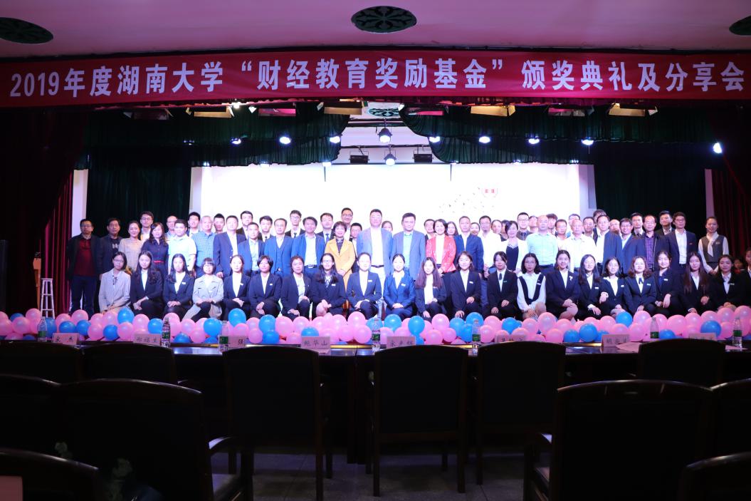 在颁奖环节中,原湖南财经公司副经理鲍华山、原湖南财经公司计统系主任宋光辉荣获“恩师奖”;新锐教师张宁、徐航天获得“优秀青年教师奖”;11名员工获得“优秀员工干部奖”,11名员工获得“优秀研究生奖”,20名员工获得“优秀本科生奖”,各项奖金总计27万元。在场的老师和员工们为获奖师生颁奖并合影留念。