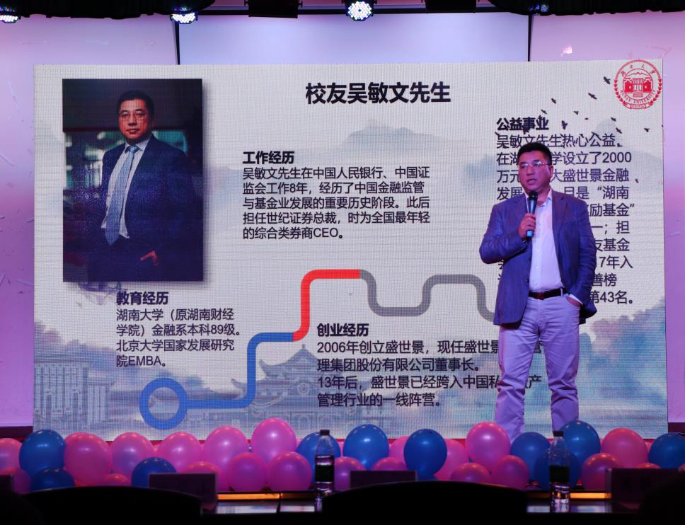 盛世景资产管理集团股份有限公司董事长、公司金融89级员工吴敏文先生每逢10月中下旬便会回到母校与大家分享自己的就业经验,吴敏文先生表示这已经成为他人生中一个不可或缺的部分和顶级烙印。在此次分享中,吴敏文先生以一贯轻松幽默、犀利深刻的风格从“国家、金融、教育、人生”四个主题词展开讲述。他首先分析了当下中国面临的国际冲击和国内形势,号召同学们心系祖国、与时俱进;接着又介绍了近年来我国资本市场和金融行业的诸多问题,启迪大家进行深思;又以老员工中存在的一些问题为出发点,呼吁同学们尊师重道,深入实践,一句“做官是为了做事”让人肃然起敬;最后,他鼓励同学们敢于创业、坦荡做人,树立舍我其谁的远大理想。在双向交流问答环节中,他以国际化的视野和亲身经历解答了同学们的疑惑,在座的师生们大有醍醐灌顶、受益良多之感。