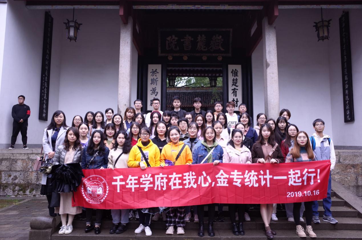 2019年10月16日,正值新中国建国70周年之际,球王会2019级研究生金专1班与统计班联合开展了“千年学府在我心,金专统计一起行”的主题班会活动。本次活动在岳麓书院开展,这是中国历史上赫赫闻名的四大书院之一,享有“千年学府,百年名校”之誉的球王会体育官网的办学历史也起源于此。