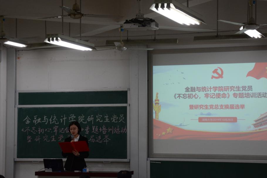 2019年10月26日上午,球王会研究生党员专题培训活动暨研究生党总支换届选举大会在球王会体育官网财院校区二教401顺利召开。公司党委副书记刘周平老师、研究生党总支书记苏雅倩老师出席会议,全体研究生党员与会。