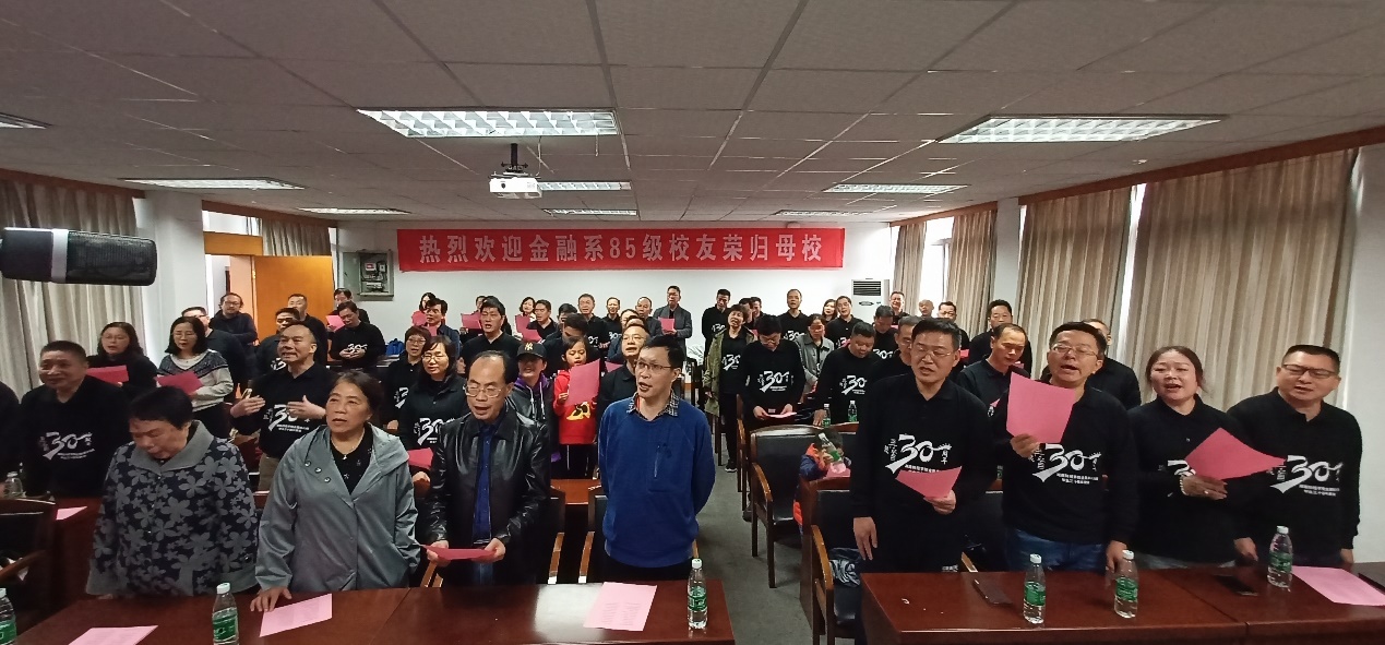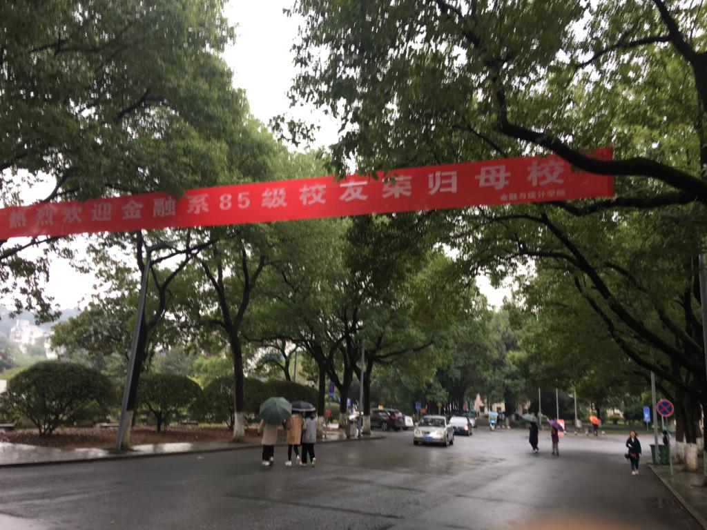 2019年10月26日上午,秋雨绵绵,球王会体育官网财院校区迎来了金融系85级的员工们回归母校,门口崭新的横幅也在欢迎员工们的到来。