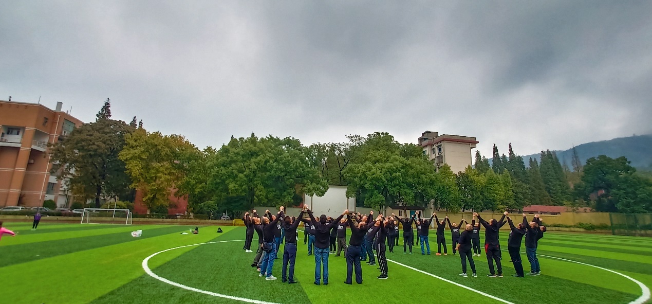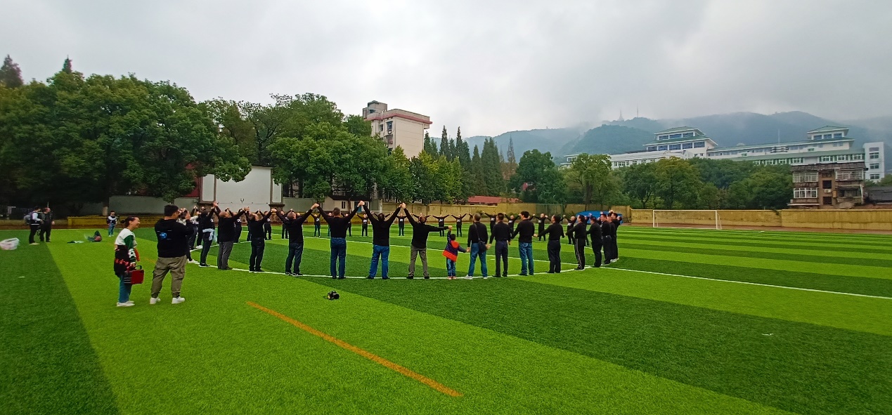 随后,员工们来到足球场进行航拍录像。员工们在足球场的中圈摆出数字“85”和“30”,代表着金融系85级的员工毕业30年后再次回到母校相聚。