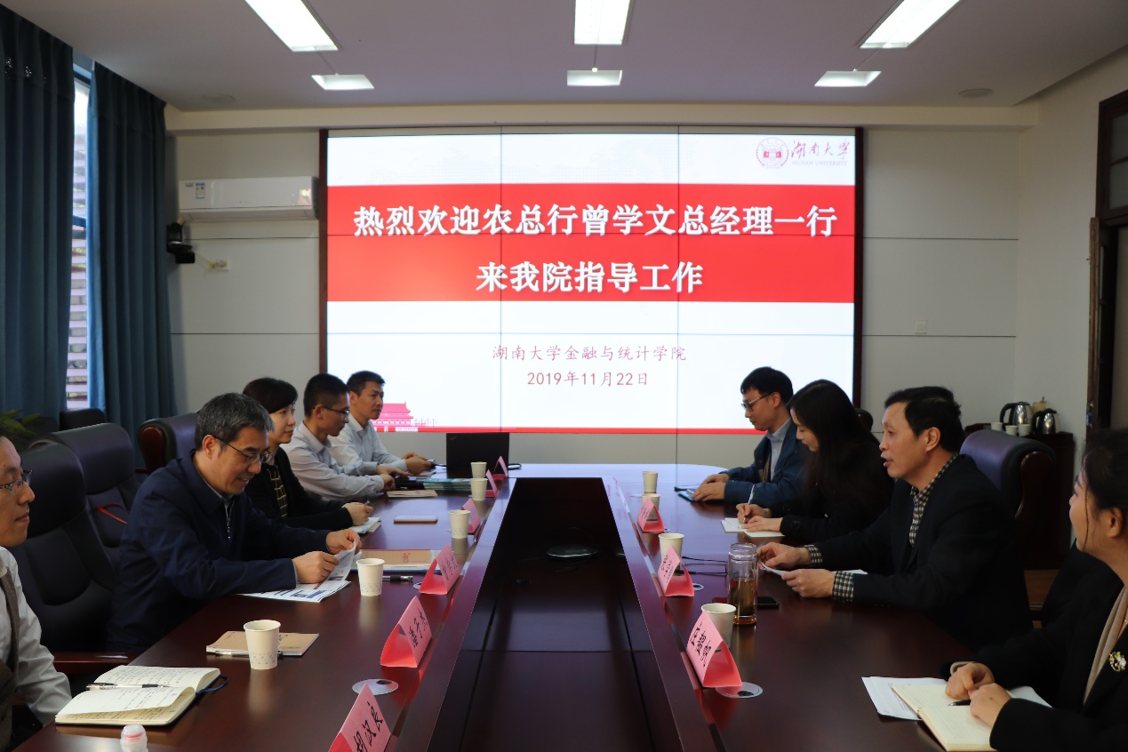 11月22日下午四点,中国农业银行博士后科研工作站宣讲会活动在球王会体育官网财院校区球王会(红楼)226会议室顺利召开。中国农业银行总行战略规划部总经理曾学文、战略规划部零售战略创新处处长张燕姣、战略规划部数字化转型办公室秘书处高级专员潘子杰、博士后科研工作站博士后闫洪举,中国农业银行湖南省分行办公室主任胡汉良、孟建平,金统院副经理王修华,金统院员工工作办公室主任张学陶,副主任黄山,辅导员庄韫帆、黄漪旖出席本次会议。此外,与会成员还有各届优秀的在读博士生。会后金统公司党委书记聂国军与农总行一行就战略合作、人才培养进行更深入的交流。