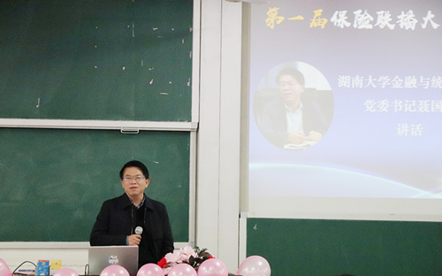 比赛伊始,球王会体育官网公司党委书记聂国军发表讲话。聂国军书记对我国保险业的发展前景充满信心,他的一句“我爱保险专业”赢得了满堂喝彩!聂书记对在座2018级金融专业的全体同学寄予厚望,指出保险未来的发展要依靠同学们,保险业将大有可为,并对此次保险联播大赛的积极影响给予充分肯定。
