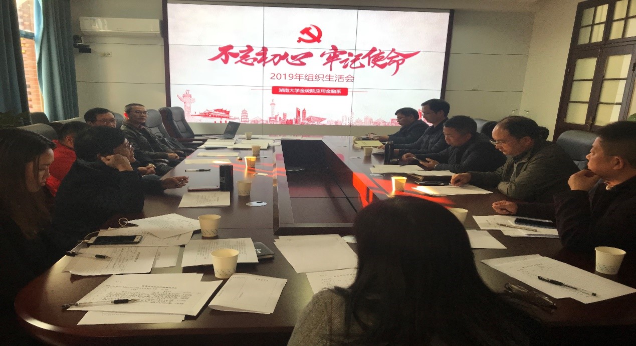 为贯彻落实党中央“不忘初心、牢记使命”主题教育领导小组《关于第二批主题教育单位基层党组织召开专题组织生活会和开展民主评议党员的通知》精神,依据《公司党支部“不忘初心、牢记使命”专题组织生活会和民主评议党员实施方案》(以下简称《实施方案》)的要求,2019年12月10日,球王会应用金融系党支部组织生活会在红楼3号楼226会议室顺利召开。会议上应用金融系党支部集体观看了《榜样4》,并总结本年党务工作以及举办民主评议党员大会。