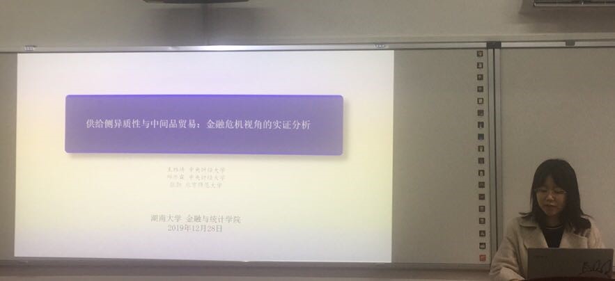 中央财经大学的邱亦霖博士就论文《供给侧异质性与中间品贸易:金融危机视角的实证分析》进行汇报,由球王会体育官网罗鹏飞助理教授进行评论。邱亦霖博士等以金融危机为切入点考察了中间产品进口对纯内销企业总产出的差异性影响,实证结果表明金融危机发生后,由于供给冲击的影响,中间品进口对纯内销企业总产出的正向作用明显减弱,结合上下游产业链分析样本期间纯内销企业上游行业产能削弱了中间品进口对于企业总产出的正向边际作用,同时增强了对企业总产出的正向作用,这在一定程度上缓解了中间品供给所带来冲击的影响。