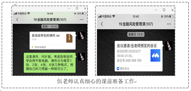 公司伍伟副教授,自得知公司“停课不停教与学,不停学“的部署之后,结合院校的力量与公司研究生教师团队的经验,采用了“腾讯会议+微信群互动”的方式,为89位研究生规划了《金融风险管理》的学习方案。