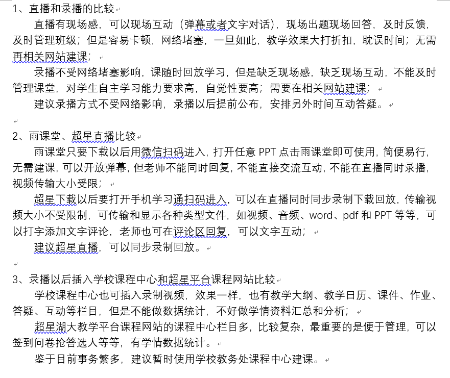 自接到推迟开学开展远程教学的通知,何老师积极准备认真学习学堂在线雨课堂、超星学习通、QQ对话、腾讯会议等各种远程教学工具,并对各种教学工具进行逐一试用比较,写出平台软件试用分析对比报告。