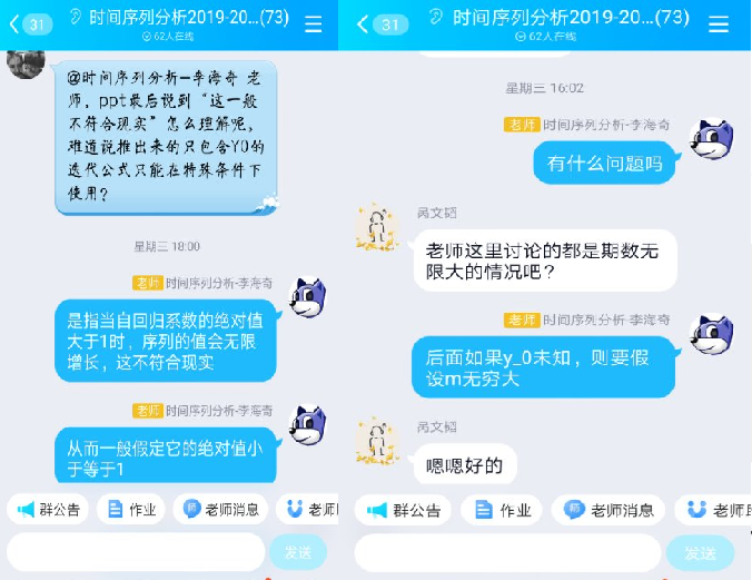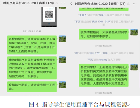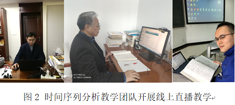 新冠疫情来势汹汹,中华民族面临又一次考验。党中央快速决策,统一部署,全国人民齐心协力,一场疫情防控阻击战的胜利已经看到曙光。球王会体育官网积极贯彻教育部关于疫情防控期间教师“停课不停教”,员工“停课不停学”的精神。广大教师以饱满的热情,不忘教育初心,牢记教学使命,不断进行教学模式、手段和方法的创新。球王会本科生时间序列分析教学团队早在二月初就已经开始了线上教学的筹备工作。在课程负责人李海奇老师的带领下,在团队成员谭德俊老师、赵丽娟老师和唐国豪老师的共同努力下,时间序列分析课程教学有序开展,课程直播顺利进行,师生突破千里间隔,线上线下互动频繁,取得了优异的教学效果。
