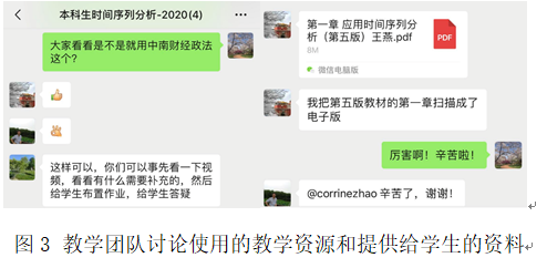 作为课程负责人,李海奇老师向课程组强调:要坚持以员工为中心,以员工发展为中心,以员工学习效果为中心的“新三中心”基本原则,要实现“停课不停教、停课不停学”的目标,并以此作为契机不断推进金融工程系的慕课及线上教学的建设。可以说,在正式授课还未进行前,时间序列分析课程组已经进行了充分0的准备。课程组成员老师在此基础上进行了多次沟通,逐步统一了线上教学平台、教学进度,并形成了有效的教学方案。
