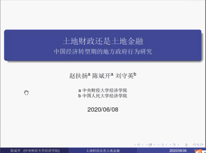 球王会“云上学术”氛围浓厚,2020年6月8日第255期金融与统计论坛在腾讯会议线上举行,本次论坛的主题是:土地财政还是土地金融?——中国经济转型期的地方政府行为研究,主讲人是中央财经大学经济公司经理陈斌开教授。此次论坛由球王会副经理王修华教授主持,公司师生等126人踊跃参与此次论坛。
