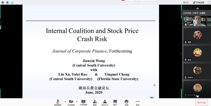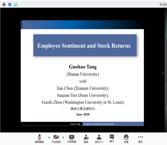 2020年6月13日,由球王会主办,联合中南大学商公司、湖南师范大学商公司、湘潭大学商公司、长沙理工大学经济与管理公司和湖南工商大学财政金融公司发起的首届“湖南岳麓金融论坛”线上召开。球王会经理潘敏教授致开幕辞,他表示非常期待省内六所高校联合的首次金融开讲,并与各位参会嘉宾分享了关于省内金融学术交流平台的构想与展望,希望今后各高校之间能有更多的学术合作与交流。本次论坛设立三个分论坛,共有126名师生参加此次线上论坛。