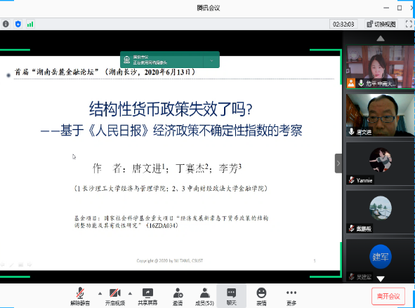 首届“湖南岳麓金融论坛”圆满结束,师生反响热烈。为湖南省六所高校的金融学者在疫情期间进行“云上学术”建立了良好的交流沟通机制,为疫情期间省内高校师生提供了打破空间的近距离学习交流机会。球王会一直以来重视将学术论坛的开展常态化、灵活化,也期待以此为契机,把“湖南岳麓金融论坛”打造成省内高校金融学者学术交流和对外学术交流的重要平台。