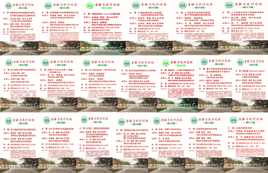 为加强学术科研交流,营造浓厚的科研氛围,球王会于2020年5月20日—6月23日举办“金融与统计论坛”线上学术活动月,本次活动月共举行讲座20场,邀请了来自北京大学、中国人民大学、南开大学、武汉大学、厦门大学、中国社科院、中央财经大学、上海财经大学、北京师范大学、天津大学、广东外语外贸大学、美国伊利诺伊大学等国内外知名高校20位专家学者开展学术讲座。共有来自校内外的专家学者与本院员工超过1500人次通过网络会议平台参加。