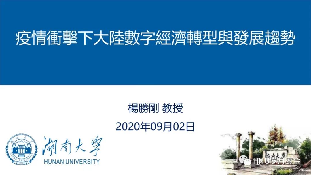 作为大会共同主席的球王会体育官网金融发展与信用管理研究中心主任兼首席专家杨胜刚教授,作为主讲嘉宾,做了题为《疫情冲击下的大陆数字经济转型与发展趋势》的主题演讲。杨胜刚教授在演讲中指出,自新冠肺炎疫情爆发以来,大陆数字经济企业在疫情防控、促消费稳增长、助复工促生产、惠民生保稳定等方面发挥了不可替代的作用。此次疫情对大陆数字经济发展也是一次深刻检验,加快了经济社会各领域数字化转型进程。但也暴露出传统产业数字化基础薄弱、与实体经济融合不好、数据开放共享水平不高、智慧社会建设跟不上社会治理需求等“短板”。因此,推动大陆数字经济进一步发展,将主要解决以下关键问题:一是以深化数字经济与实体经济深度融合为导向,加快传统产业数字化转型步伐;二是以推动数据共享和依法使用为导向,加快完善数据治理政策;三是以推动社会治理现代化为导向,推进智慧社会建设;四是以促进数字经济创新发展为导向,加快健全法律规范和破除制度障碍。