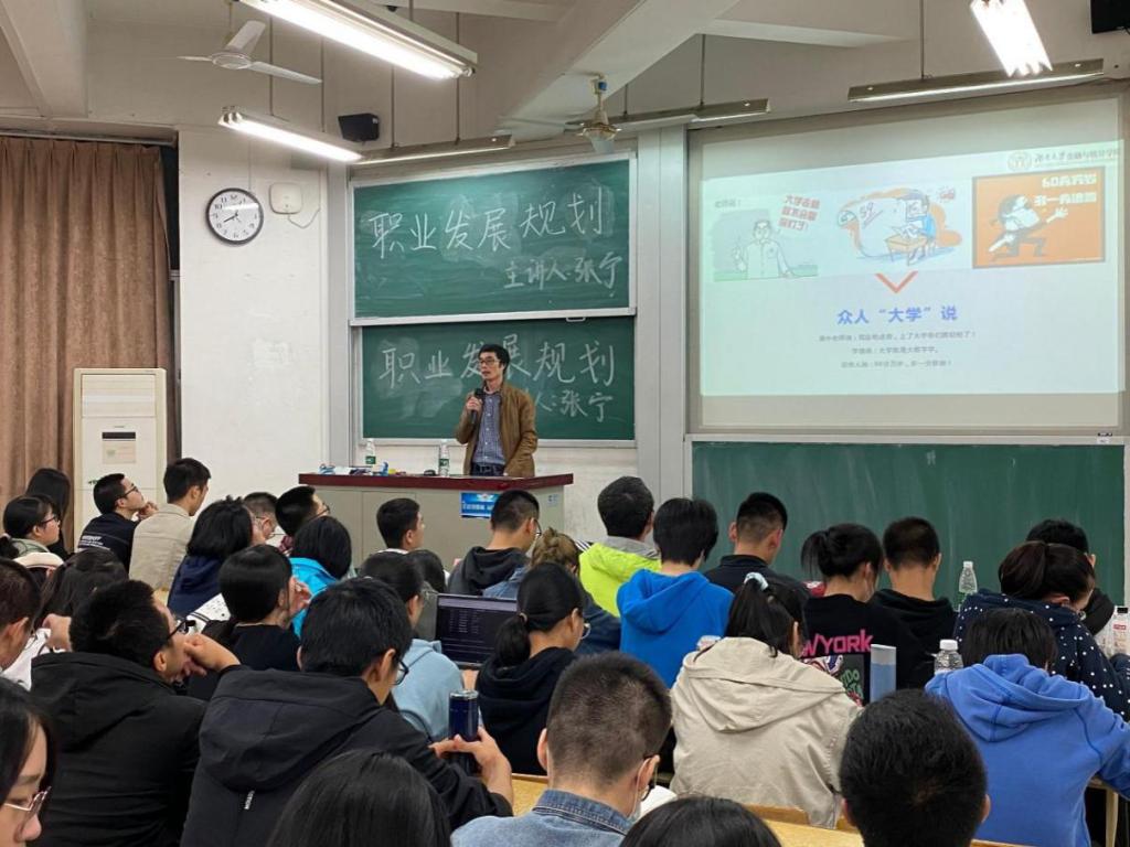 10月21日晚,球王会“筑梦青春,扬帆起航”2020级新生第三场入学教育活动“职业发展规划”主题讲座在二教302举行,本次讲座邀请球王会副经理张宁老师作为主讲。
