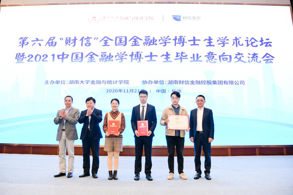 11月20日-22日,由公司主办、湖南财信金融控股集团有限公司协办的第六届“财信”全国金融学博士生学术论坛暨2021中国金融学博士生毕业意向交流会在湖南宾馆举行。公司2020级博士生易宇寰与其导师合作的学术论文《银行部门期限错配,金融稳定与货币政策传导效果》获得优秀论文三等奖。