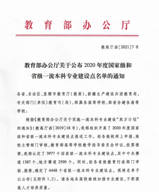 近日,教育部发布《关于公布2020年度国家级和省级一流本科专业建设点名单的通知》(教高厅函〔2021〕7号),公司保险学专业入选国家级一流本科专业建设点。