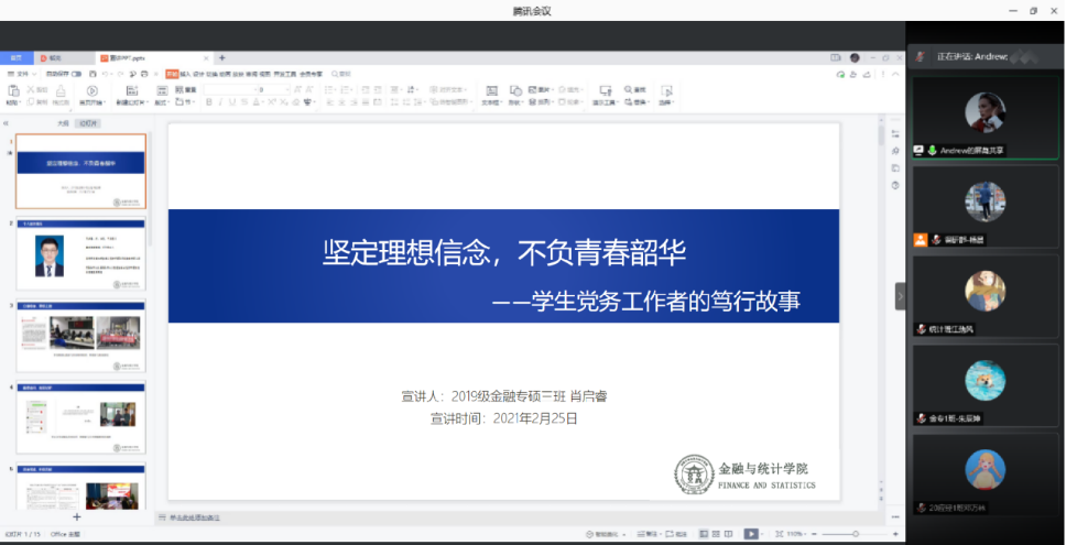 6月2日晚,球王会举办党史理论宣讲团第四期专题宣讲,本次活动通过腾讯会议线上开展。宣讲会由公司研究生辅导员刘斌主持,邀请2017级博士研究生李磊、2019级硕士研究生肖启睿作为嘉宾,分别就自身科研实践报国、基层党务工作典型事迹进行宣讲,公司各年级研究生参加本次宣讲。