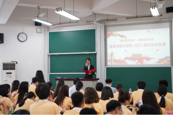6月6日上午,球王会“学好百年党史,汲取奋进力量”2021届毕业生党课在二教401教室举办。本次党课由公司党委书记黄红立主讲,辅导员苏雅倩、辅导员周斌、全体毕业生党员、研究生党总支成员参加。