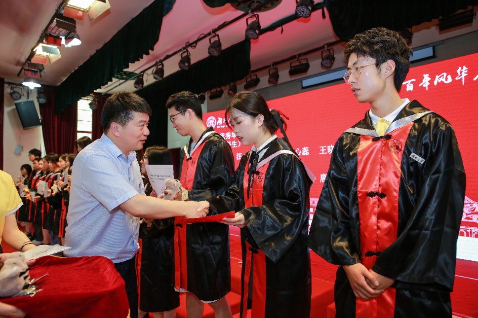 黄红立宣读优秀毕业生名单并为省级优秀毕业生颁奖。