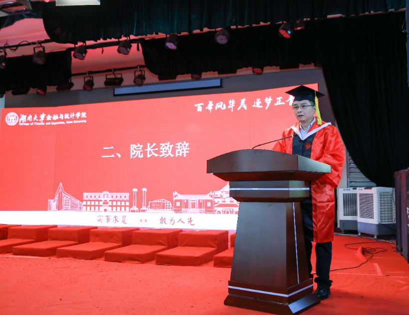2021届毕业本科生代表李杞仁、2020届毕业研究生代表彭劭志、2021届毕业研究生代表的洪俊敏、金融1707班谢慧文家长依次发言,怀念湖大金统的青春岁月,感恩金融黄埔的悉心培养和热心帮助。