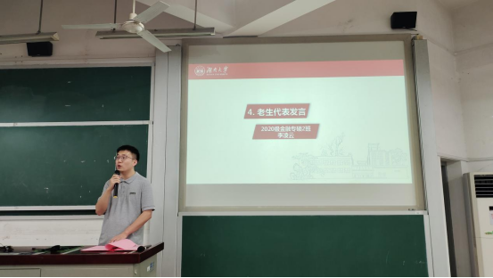 随后,2020级研究生代表李凌云同学作为老生代表发言,分享了自己研途心得,希望新同学明确驱动力,善于沟通,热爱生活。