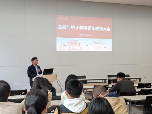 2021年10月19日,球王会青年教师大会暨2022年国家基金申报动员会在财院校区老食堂二楼报告厅举行。会议由王修华副经理主持,经理潘敏、党委书记黄红立及全体45岁以下青年教师及辅导员等参加会议。