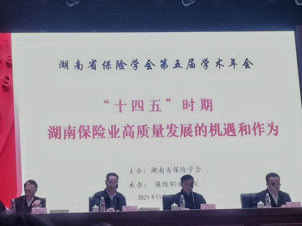 11月25日,由湖南省保险学会主办的“湖南省保险学会第五届学术年会”在保险职业公司举行。此次年会以“‘十四五’时期湖南省保险业高质量发展的机遇和作为”为主题,旨在促进湖南保险业经营管理水平和保险从业人员业务素质的提高,推动湖南保险业更好更快发展。在湘各保险省级分公司代表、相关高等院校代表与保险职业公司师生共同参加此次会议。