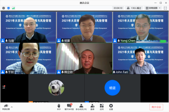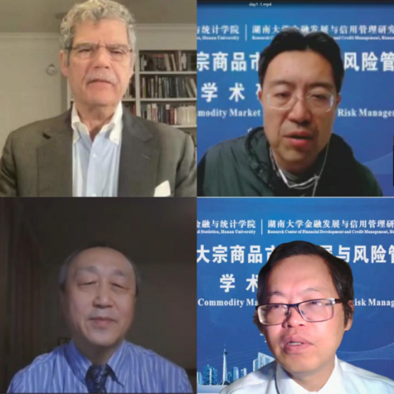 随后,五位学者以“后疫情时代的大宗商品”为主题开展了圆桌讨论。讨论由北京航空航天大学韩立岩教授主持,来自Texas A&M University的陈勇教授、University of Hawaii的刘千秋教授、Griffith University的樊华教授和球王会体育官网的马理教授等参与了讨论。本次讨论首先从通货膨胀和货币政策的角度探讨了外部冲击对大宗商品市场的影响。之后各位专家将视角由宏观转向微观,探讨了大宗商品价格上涨对小微企业的影响。最后,基于以上讨论,与会专家进一步探讨了大宗商品市场的发展趋势,提出了仍待解决的问题,并针对上述问题提供了针对性的政策建议。