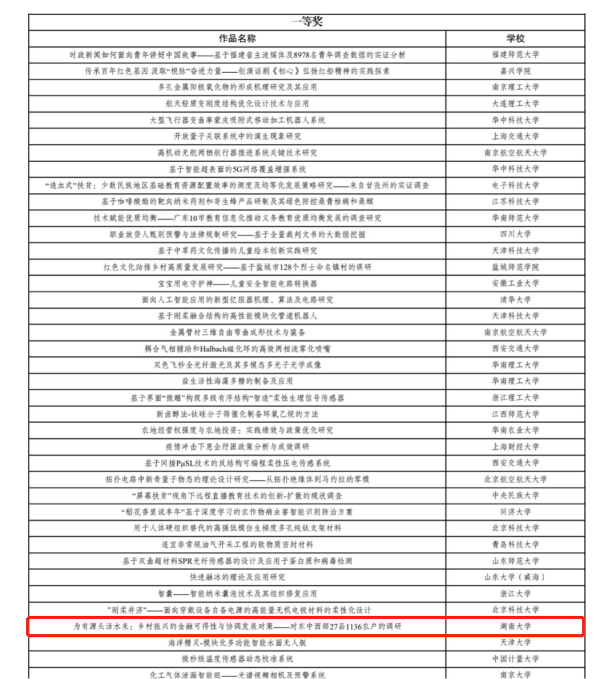 由共青团中央、中国科协、教育部、中国社会科公司、全国学联主办,四川大学承办的第十七届“挑战杯”全国老员工课外学术科技作品竞赛终审决赛于2022年3月26至28 日举行。由公司陆筱媛、于赛汗、戴睿、孙天瑞、雷康灏同学及机械与运载工程公司冯震东同学共同完成的《为有源头活水来:乡村振兴的金融可得性与协调发展对策——对东中西部27县1136农户的调研》荣获国赛一等奖。该作品由成程副教授、杨胜刚教授和徐照宜博士指导完成。