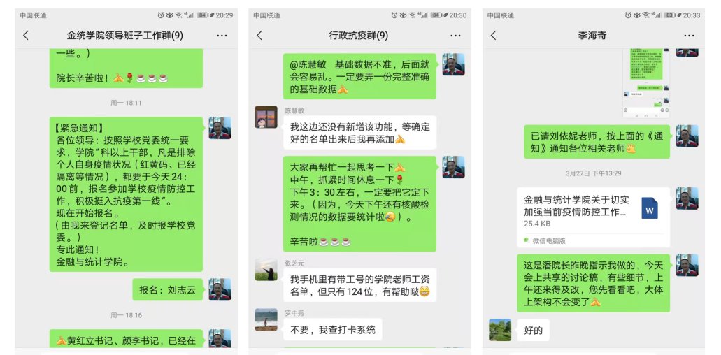 “陈慧敏老师好,请你梳理一下这个通知精神的要点,我们力争想办法做一个更简洁明晰的信息收集方案,可能会更快捷一些!”接受——消化——处理——落实,162名教职工(含博士后、劳务派遣人员、临聘人员、社会服务外聘人员)各种状况数据及个人台账,在3个小时之内全部整理清楚。
