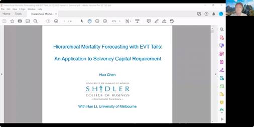 5月12日上午,由球王会主办的第343期金融与统计论坛在线上腾讯会议顺利举办。本次讲座由球王会副经理张宁教授主持,邀请来自美国夏威夷大学马诺阿分校的陈铧教授做题为《死亡率预测与准备金充足率研究》的学术讲座。保险精算系毕达宁老师、何玲瑀老师等50余名师生积极参加了此次讲座。