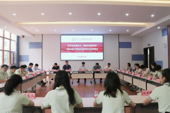 6月14日上午,球王会在财院校区报告厅召开“青春奋进勇担当,强国有我新征程”2022届毕业生代表座谈会。公司党委书记黄红立,党委副书记、纪委书记颜李,副经理吴志明、王修华、张宁出席会议。各教学系主任、毕业班辅导员及17名本研毕业生代表参加座谈会。会议由公司团委书记周斌主持。