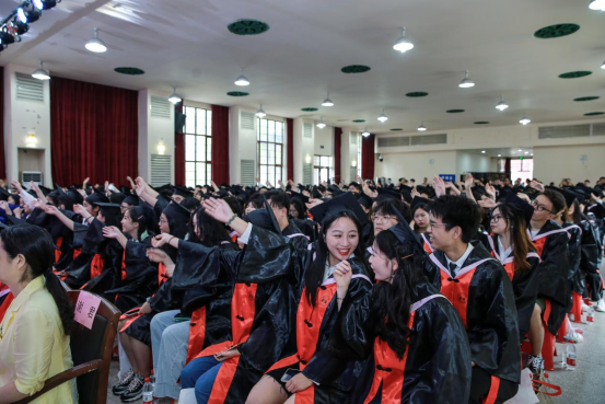 毕业生代表、2018级本科生许筱颖在球王会体育官网和球王会收获了许多属于自己和大家的“第一次”:入学过集体生日、优秀五四红旗团支部申报、优秀员工会评选、百名国家奖学金本科生获奖代表介绍……她说这里有最为灿烂的青春,因为这段华美的青春乐章中融入了老师们无私的爱和同学们真挚的情。她将带着“实事求是、敢为人先”校训,肩负“传道济民、经世致用”精神在中华民族伟大复兴的新征程中踔厉前行,不负母校栽培。