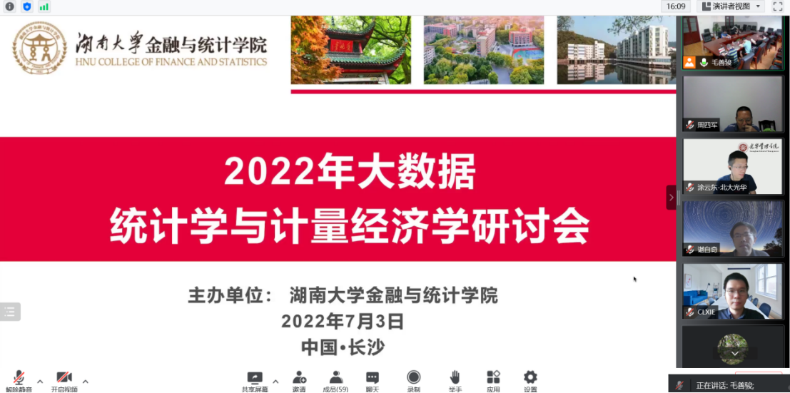 本次会议邀请到华东师范大学统计公司研究员谌自奇、首都经贸大学国际经济管理公司副教授陈烨、厦门大学数学科学公司副教授胡杰、东北财经大学高等经济研究院助理教授吕耀廉、北京大学光华管理公司副教授涂云东、中国人民大学经济公司副教授王霞、北京师范大学统计与数据科学中心副研究员谢传龙、上海交通老员工物信息学与生物统计学系副研究员张岳、球王会副教授谭发龙和助理教授陈汉带来了精彩报告。