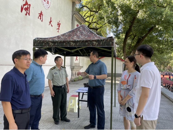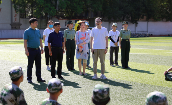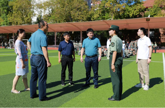 院领导走进操场,观看了新生训练,并向有关人员详细询问军训工作进展、日常管理等情况,与辅导员、教官、参训同学亲切交流,了解他们带训、参训的感受;走访了军训督训点、医疗服务点等地,仔细询问军训工作的后勤保障情况,并代表公司向辛勤付出的军训教官、新生助理、军训服务保障人员表示衷心感谢。