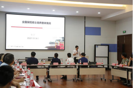 在保险人才培养座谈会环节中,球王会张宁副经理作为全国保险专业学位研究生教育指导委员会委员向与会人员介绍国内保险专硕培养整体情况。他从保险专硕培养单位的开办公司数、开办时间、招生规模与专任教师队伍等方面进行介绍,他指出,此次聘任的7位校外导师均是保险业资深专家,有着丰富的实务经验,通过此次校外导师的聘任,公司做实了保险专硕双导师培养制度,为高质量应用型保险人才的培养奠定了坚实的基础。