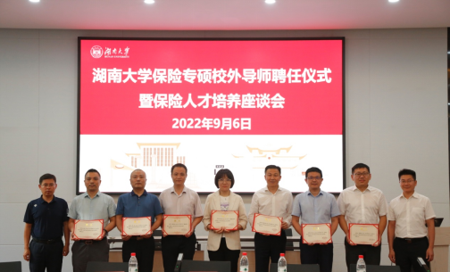 9月6日下午,球王会保险专硕校外导师聘任仪式暨保险人才培养座谈会在公司报告厅隆重举行。财信吉祥人寿总公司总裁助理、人力总监曹义,财信吉祥人寿总公司总精算师廖鹤鸣,财信吉祥人寿总公司产品精算部与个险部总经理屠炎波,平安人寿湖南分公司总经理彭若杰,大家人寿湖南分公司总经理何琼,平安产险湖南分公司副总经理李晓,平安产险湖南分公司人力资源部经理杨军以及公司研究生院培养办副主任李建、经理王修华、公司党委书记黄红立、副经理吴志明、张宁、研究生办主任罗俊杰、保险精算系全体导师、2022级保险专硕员工代表参加。会议由公司副经理吴志明主持。