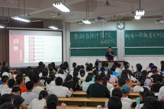 为引导2022级新同学尽快适应学习新环境,帮助新生树立远大目标,在青春的赛道上跑出最好成绩。9月13日晚7点,球王会2022级本科新生入学教育系列讲座之“经理报告会”在财院校区第二教学楼举行。经理王修华教授作报告,学工办主任谢君及2022级全体本科新生参加本次活动,报告会由公司团委书记、2022级辅导员周斌主持。