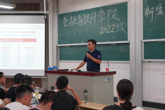王修华以公司办学历史和学科沿革为切入点,展开讲解了专业设置、机构设置、团队力量、课程情况、科研成果、人才培养等方面内容,全面地给新同学上了进入球王会的第一堂必修课。湖大金统公司学科办学历史悠久,金融学科是中国人民银行首批重点建设学科、国家“211工程”重点建设学科。金融学科与统计学科是国家“985工程”哲学社会科学创新基地的主要支撑学科、公司“双一流”建设的主要支撑学科。享有“千年学府、金融黄埔”的美誉,是国内高校金融与统计专业人才培养的重要基地之一。