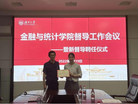 9月19日上午,金融与统计学院召开了2022年秋季学期第一次督导工作会议,并举行了新任督导聘任仪式。会议由张虹主任主持,公司张宁副经理出席,督导中心全体老师参会。